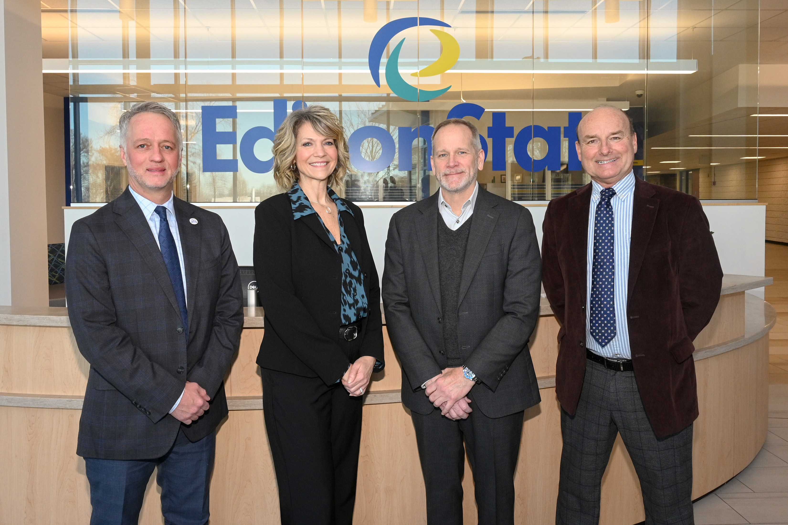 [L to R]: Dr. Chris Spradlin, Edison State President; Trish Wackler, Upper Valley Medical Center Chief Operating Officer and Chief Nursing Officer; Kevin Harlan, President, Atrium Medical Center and Upper Valley Medical Center; and Dr. Richard A. Hanes, Edison State Vice President of Advancement, Strategic Planning, and Partnerships and Executive Director of The Edison Foundation.